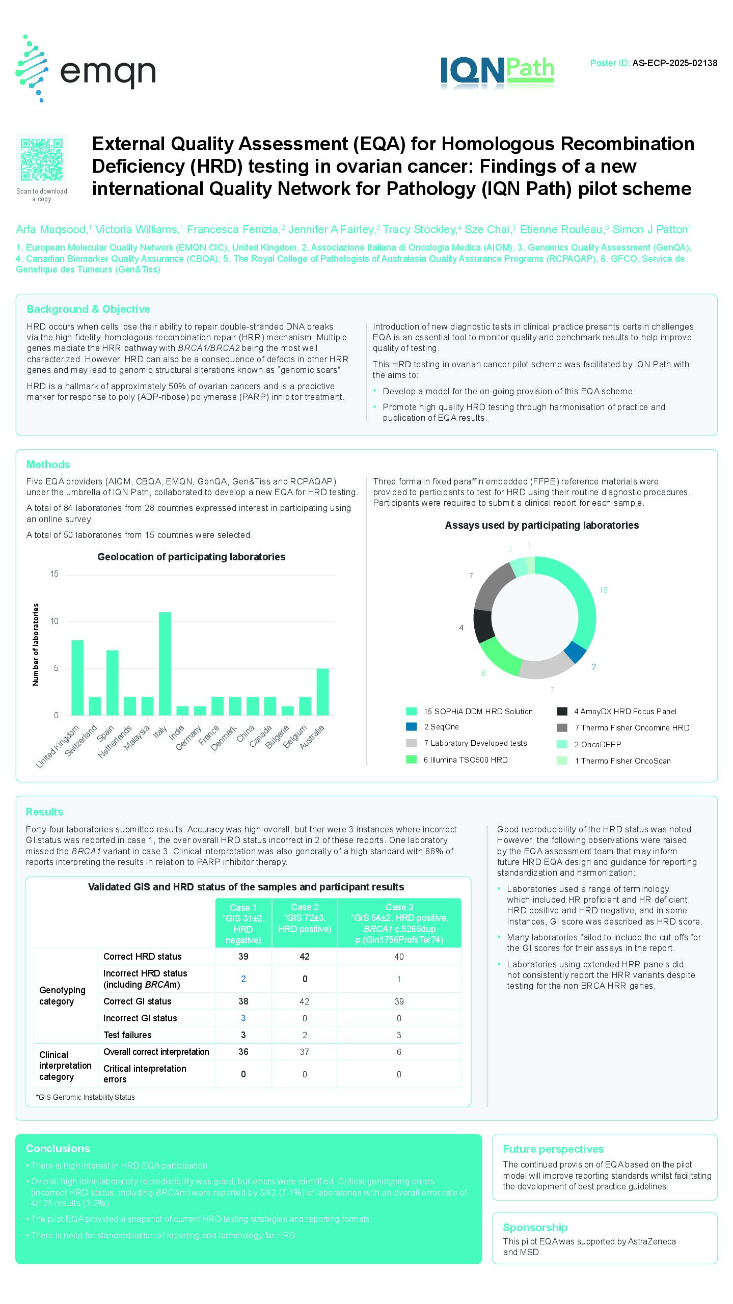 • Promote high quality HRD testing through harmonisation of practice and publication of EQA results.